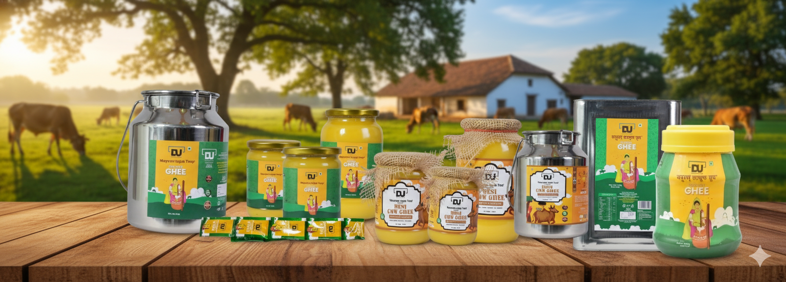Dwarka Mai Udyog Ghee is available in tins, pet jars, pouches and sachets